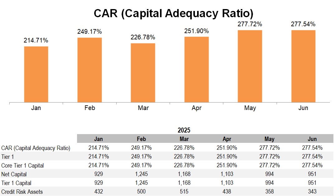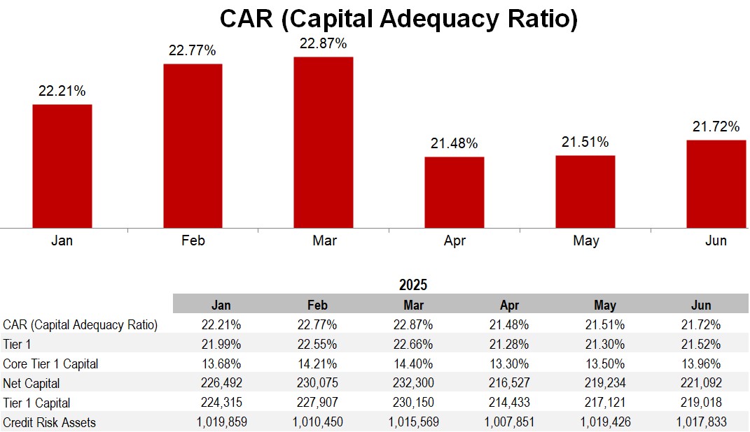 The minimum Capital Adequacy Ratio required for Bineo amounted to 10.50%, which includes a minimum requirement of Core Equity Tier 1 (CET1) of 7.00%.
