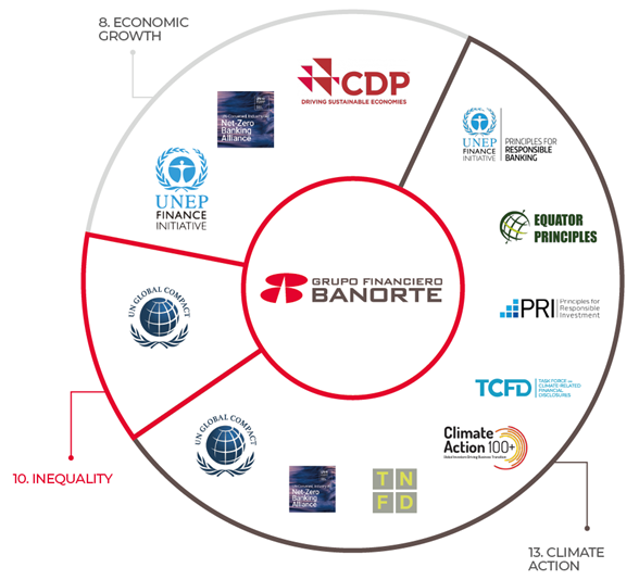 Since the creation of the Sustainability department, we have adhered to different national and international initiatives, which have served as catalysts to permeate sustainability within the bank. All these initiatives and frameworks have served as benchmark to the best practices in the world in corporate sustainability.