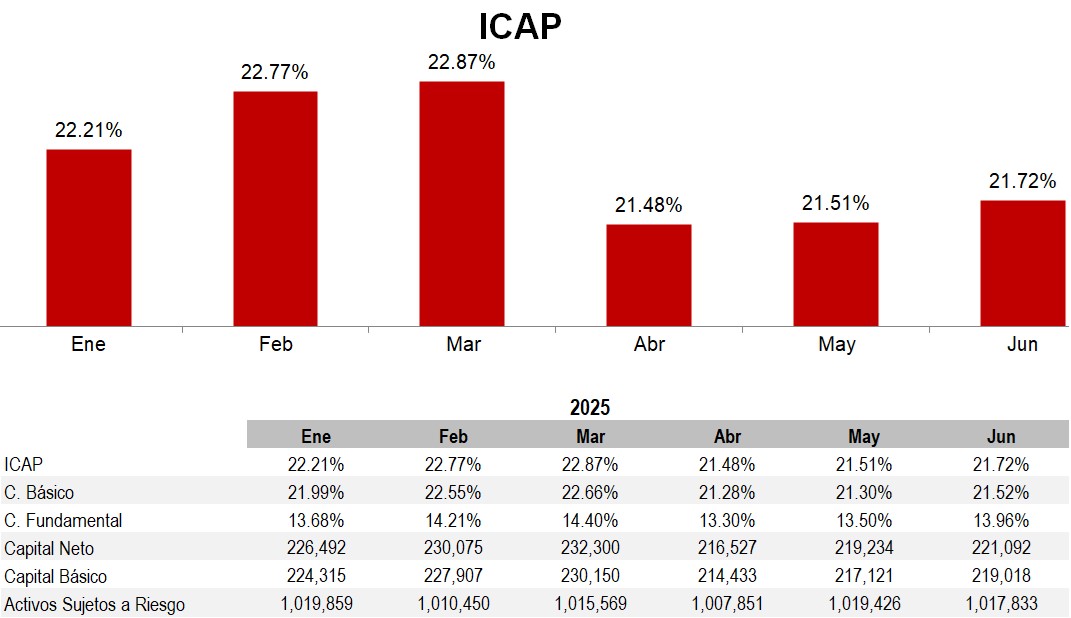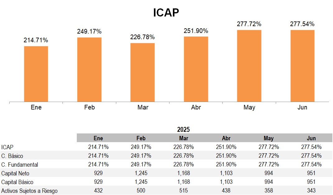 El Índice de Capitalización mínimo requerido para Bineo asciende a 10.50%, con un mínimo requerido para el CET1 es de 7.00%.