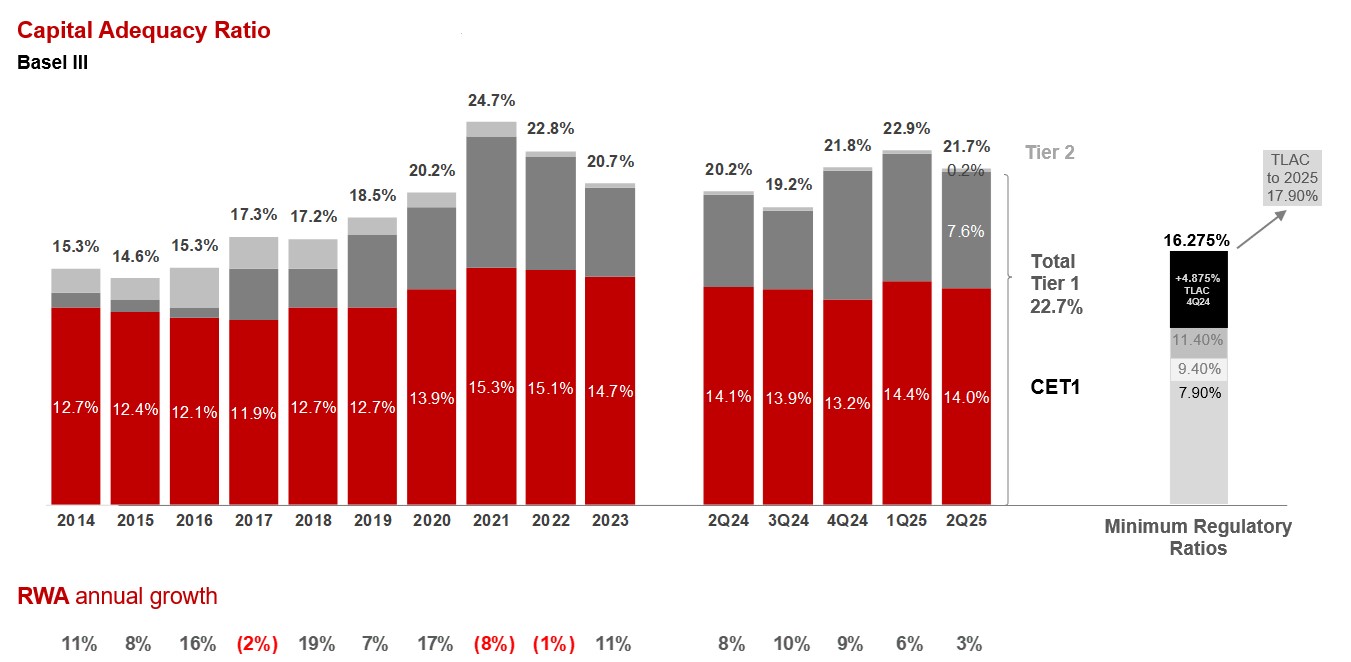 En 2023 Banorte fue confirmado como Institución de Banca Múltiple de Importancia Sistémica Local de Grado II por lo que debe mantener un suplemento de conservación de capital de 0.90 pp. Con lo anterior, a partir de 2019 el Índice de Capitalización mínimo requerido para Banorte asciende a 11.40% (correspondiente al mínimo regulatorio del 10.5%, más el suplemento de capital de 0.90 pp); por su parte el mínimo requerido para el CET1 es de 7.90%.